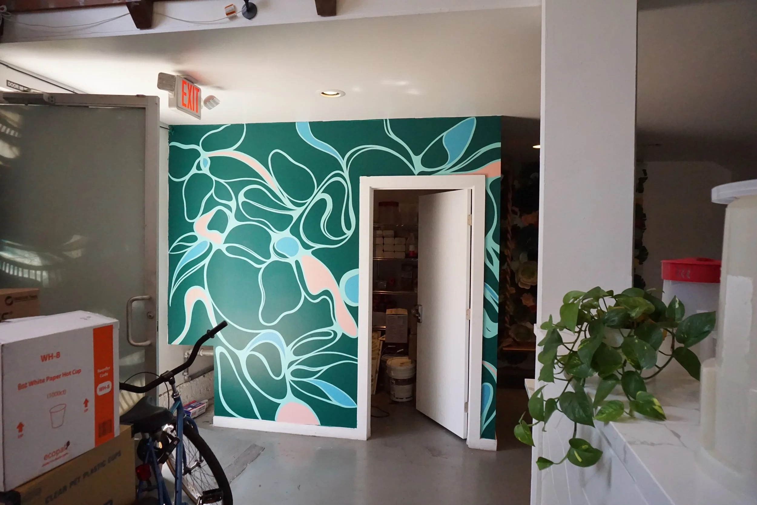 This mural lives at Rise & Grind Coffee, located in the mission district of San Francisco on 22nd & Folsom.
